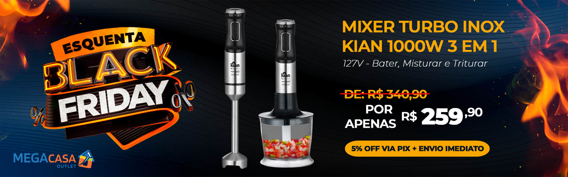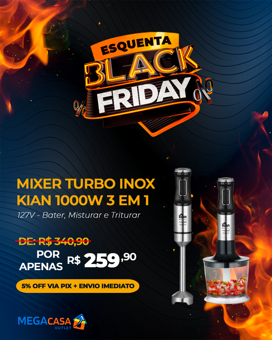 Economize 25% Esquenta Black FridayMixer Turbo Inox Kian 1000W 3 em 1 127V - Bater, Misturar e Triturar