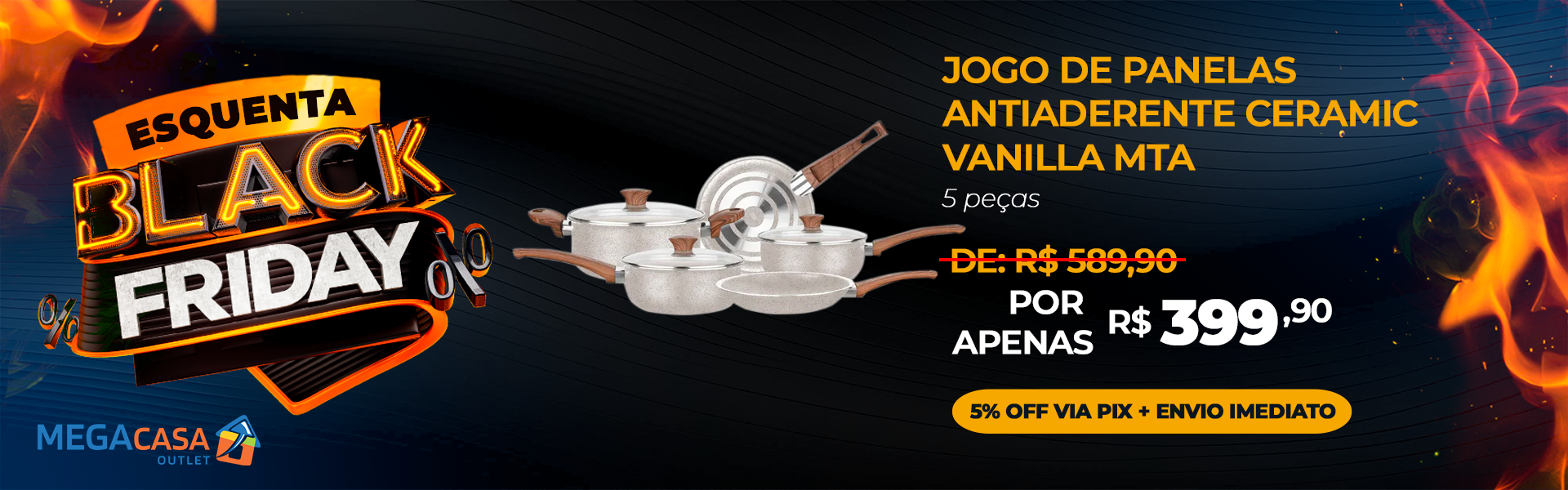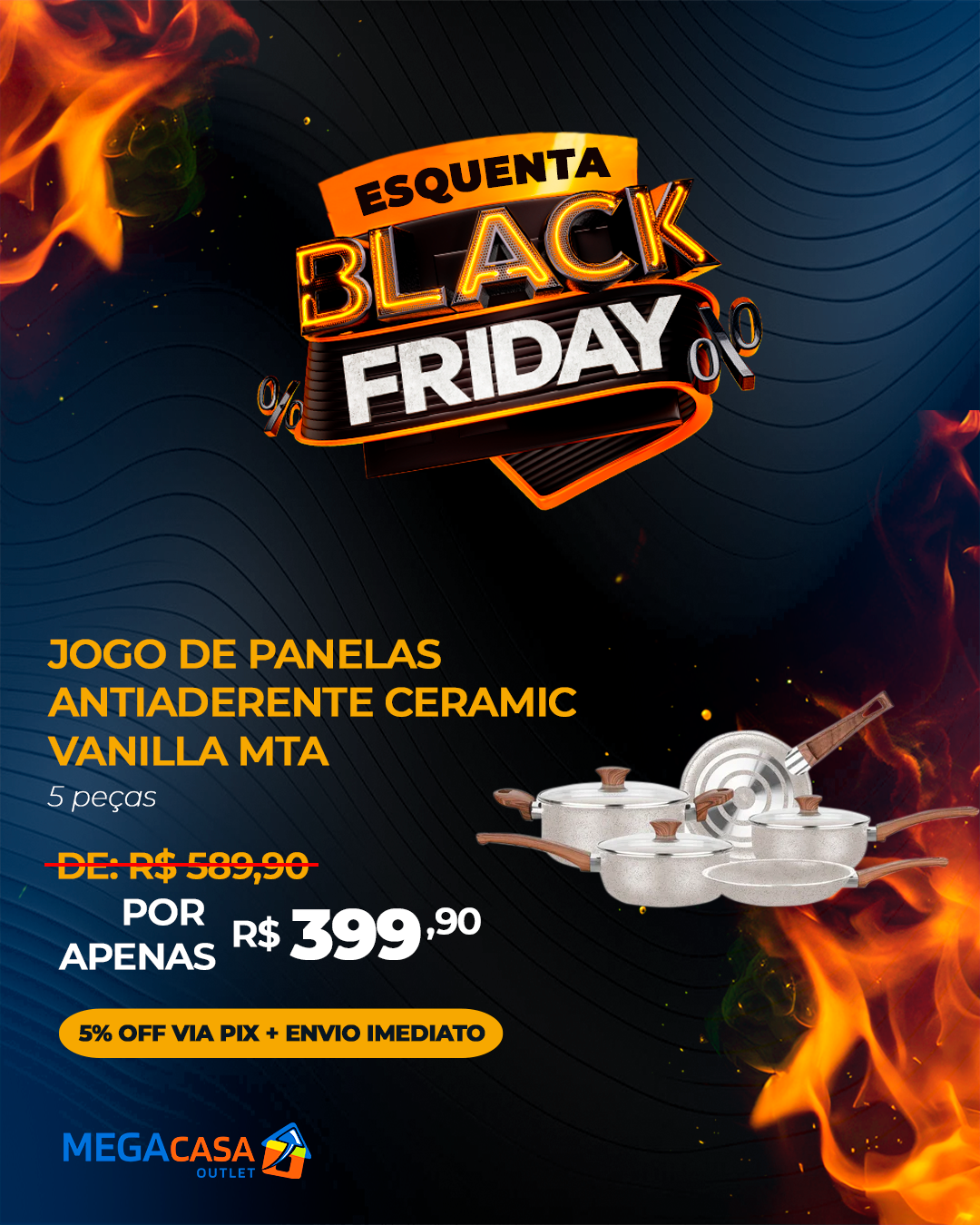 Economize 32% Esquenta Black FridayJogo de Panelas Antiaderente Cerâmico Preto MTA 5 Peças
