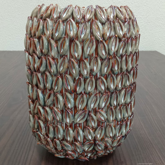 Vaso de Cerâmica Bege 45x21cm - Decoração para Sala e Escritório