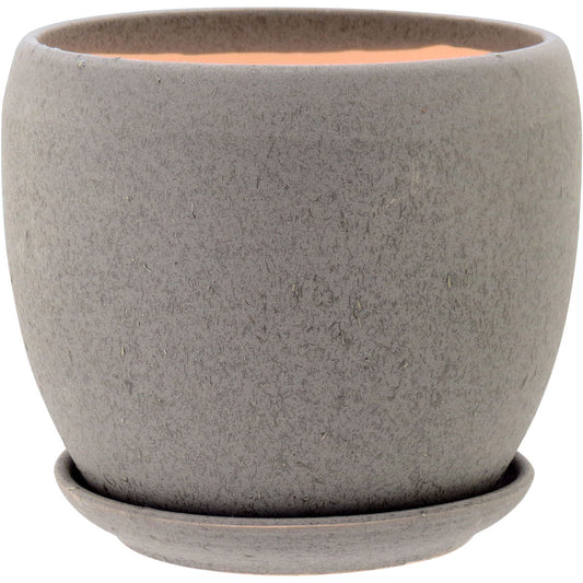 Cachepô de Cerâmica Cinza Bernan 20x14cm com Suporte para Plantas
