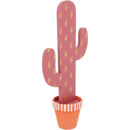 Adorno Cacto Penélope Rosa em Madeira 33cm para Decoração
