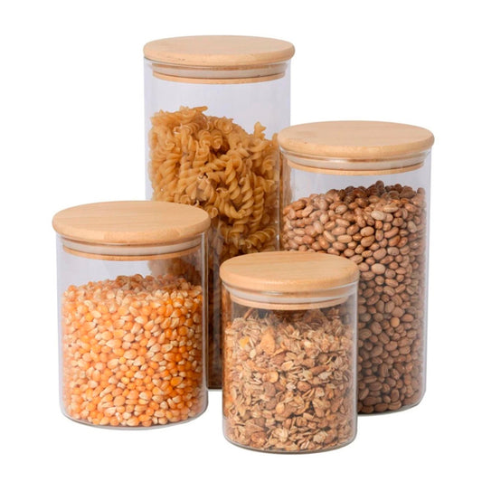 Conjunto 4 Potes Herméticos de Vidro com Tampa de Bambu Zen VD24476