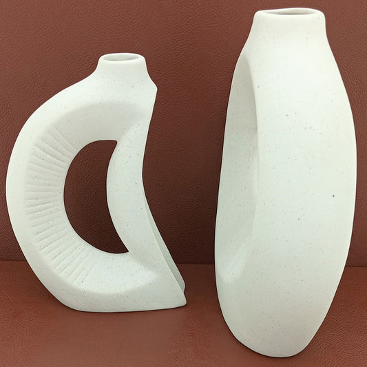 Conjunto de Vasos de Cerâmica Branca 31x15cm 2 Peças Decorativos