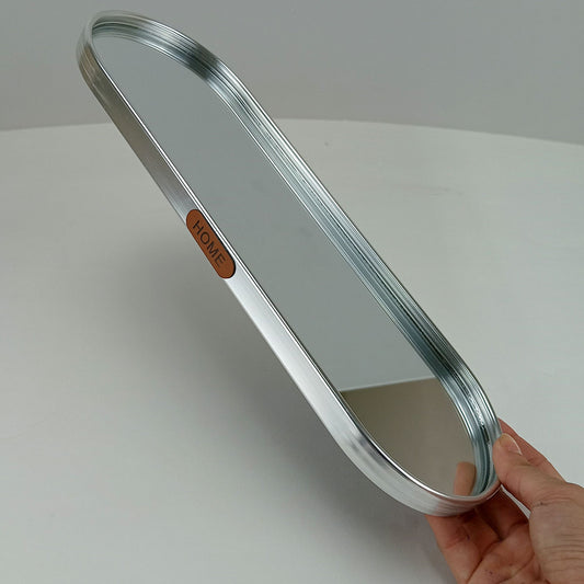 Bandeja Oval de Metal Prata Home&Co com Espelho 30x10cm