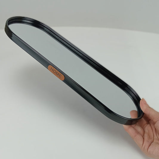 Bandeja Oval Metal Preta Home&Co com Espelho 35x12cm