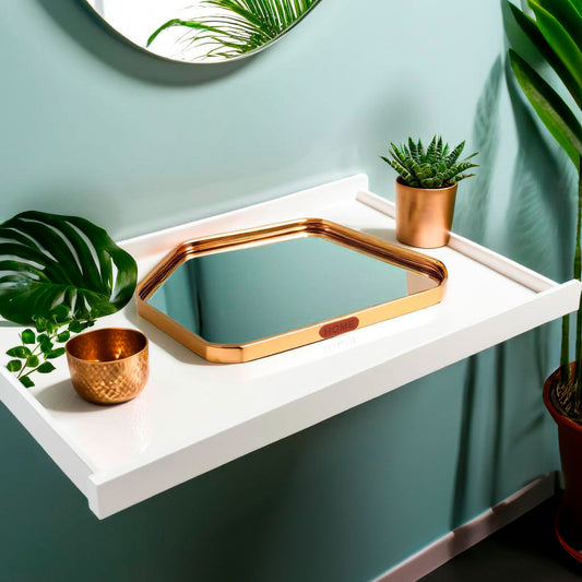 Bandeja Espelhada Dourada em Metal 26x18cm para Servir Bebidas e Petiscos
