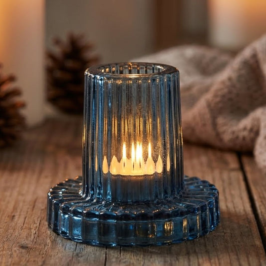 Castiçal em Vidro Azul Home&Co 6,5x7,3cm Decorativo para Velas