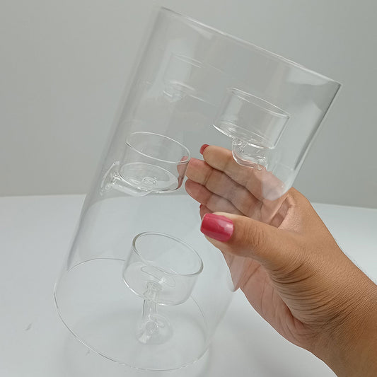 Castiçal Porta Velas 3 em Borossilicato Transparente 15x12cm
