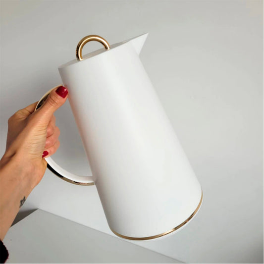 Economize 35% Esquenta Black FridayGarrafa Térmica 1L Samira Branca e Dourada - Conserva Bebidas Quentes e Frias