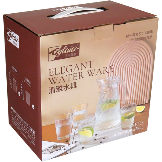 Jogo de Jarra e Copos Home&Co Vidro Transparente 1,6L e 250ml 5 peças
