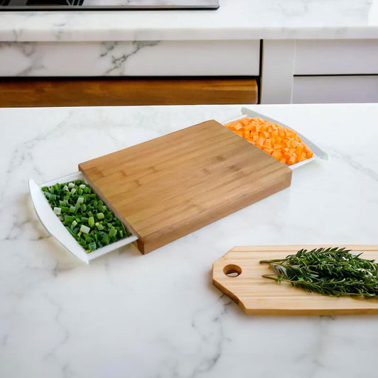 Tábua de Corte Retangular Bambu com 2 Gavetas Coletoras Home&Co 38x25cm