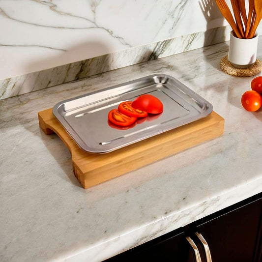 Tábua de Corte Retangular Bambu Natural com Gaveta Coletora Home&Co 36x26cm