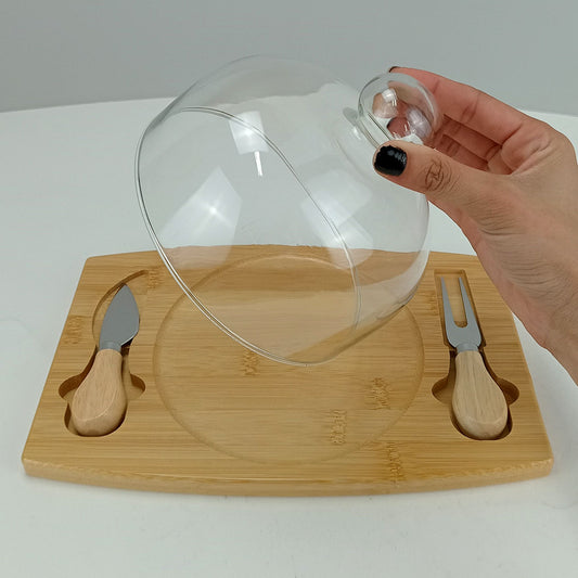 Jogo de Queijo 7 Peças Home&Co com Tampa de Vidro e Tábua de Bambu