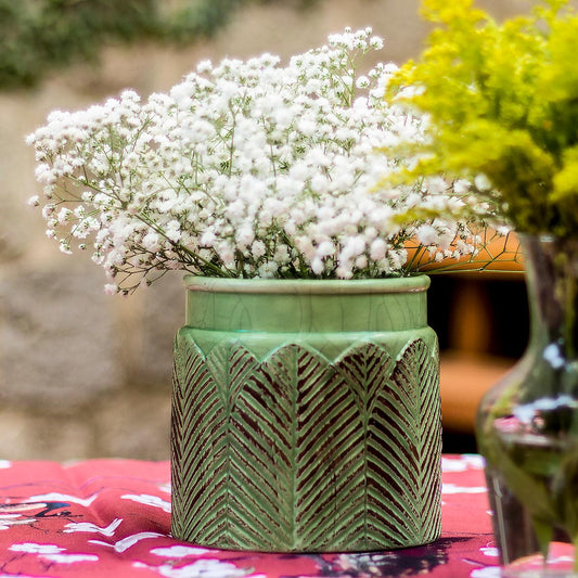 Economize 43% Esquenta Black FridayVaso Decorativo Cerâmica Verde Crispin 14x14cm para Flores