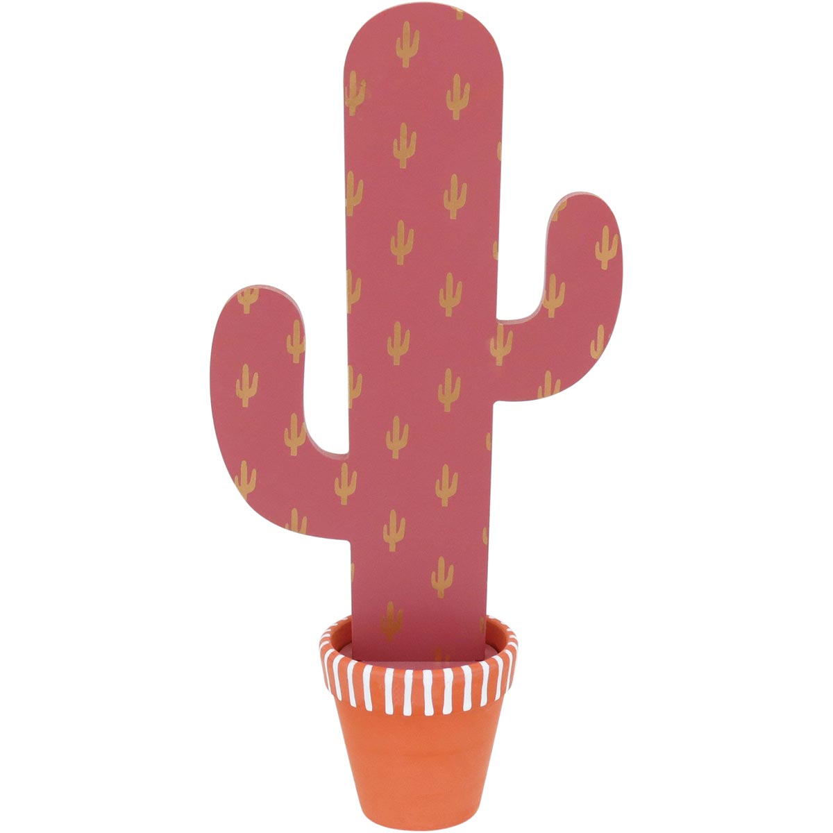 Adorno Cacto Penélope Rosa em Madeira 33cm para Decoração