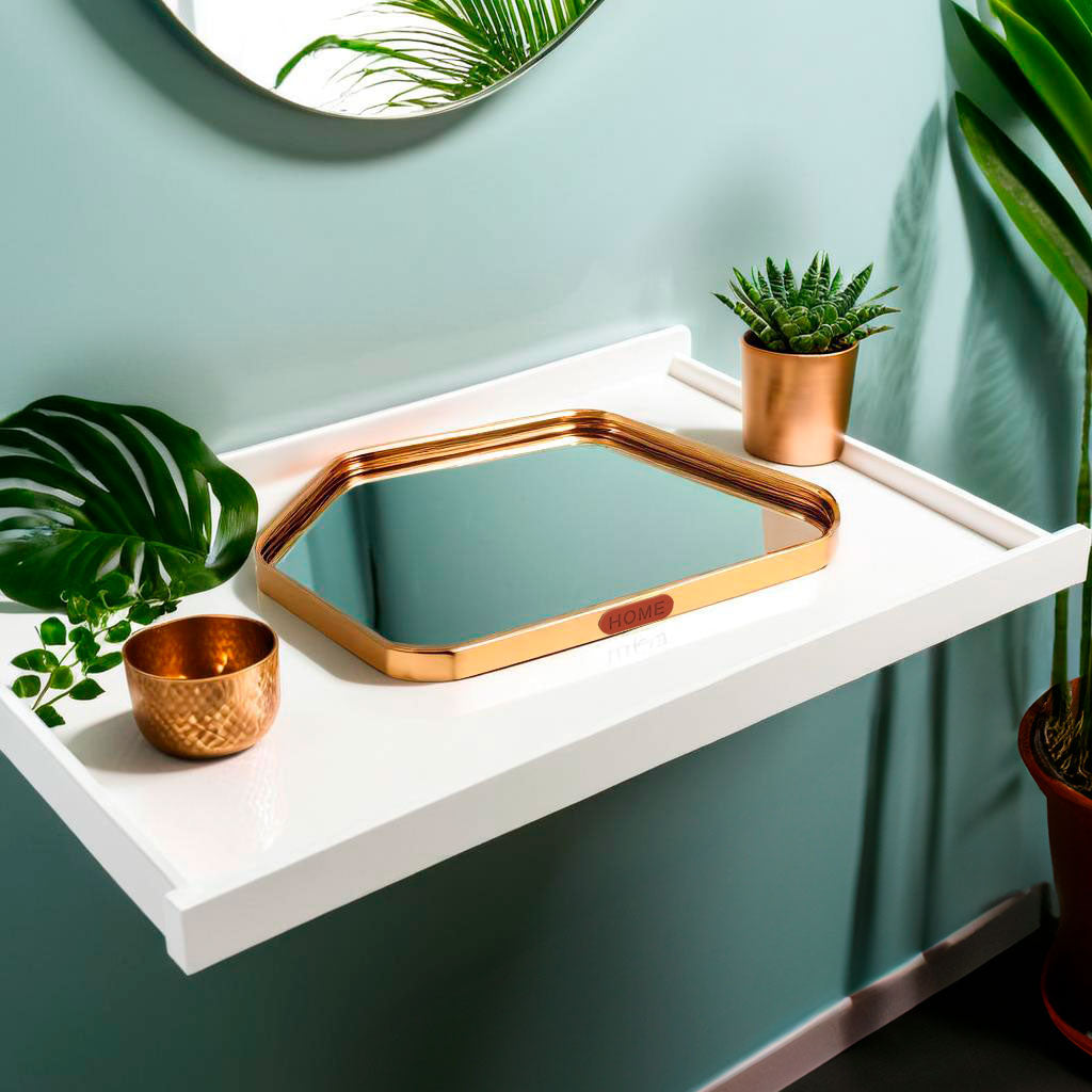 Bandeja Espelhada Decorativa Dourada: Elegância em Cada Detalhe