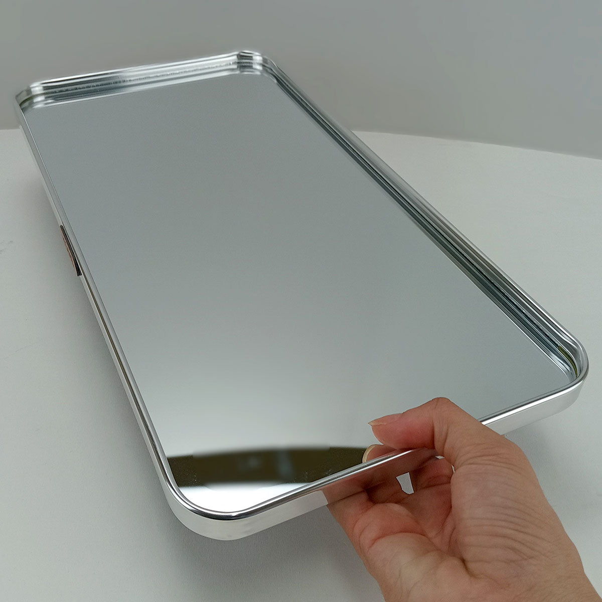 Bandeja Retangular Home&Co com Espelho Metal - Prata Elegante