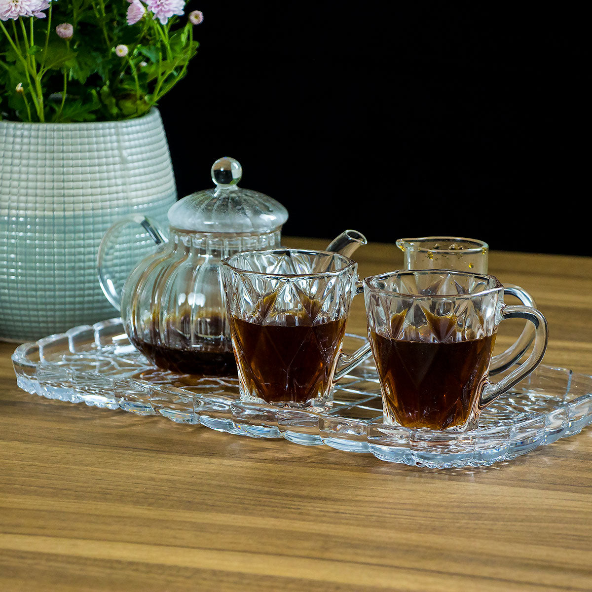 Transforme suas ocasiões especiais com nossa sofisticada bandeja decorativa em vidro. Perfeita para servir bebidas, petiscos ou sobremesas, ela não é apenas funcional, mas também uma peça de destaque que eleva a apresentação de qualquer prato, trazendo um toque de glamour ao seu dia a dia.