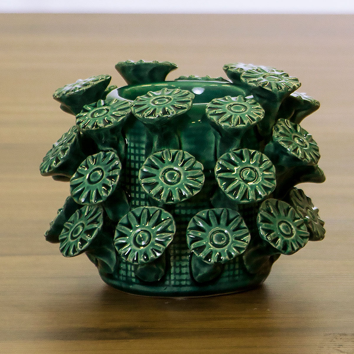 Castiçal de Cerâmica Verde 10x10cm para Decoração Elegante