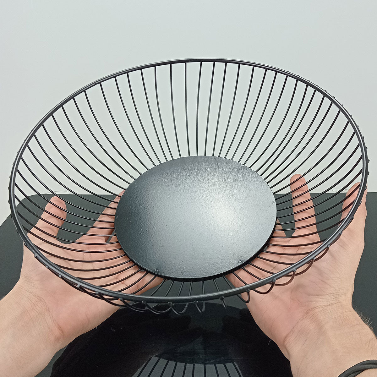 Fruteira de Metal Preta 28x28x8cm - Organizador de Frutas Elegante
