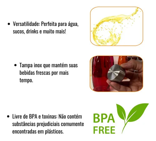 Garrafa de Vidro Scotch 1L Colorida para Água e Sucos - Mega Casa Outlet
