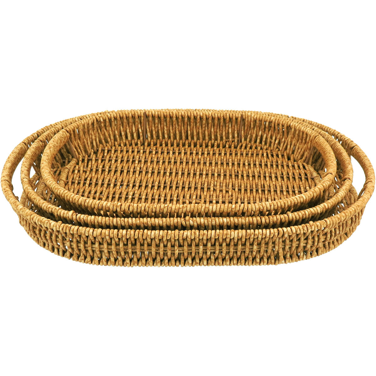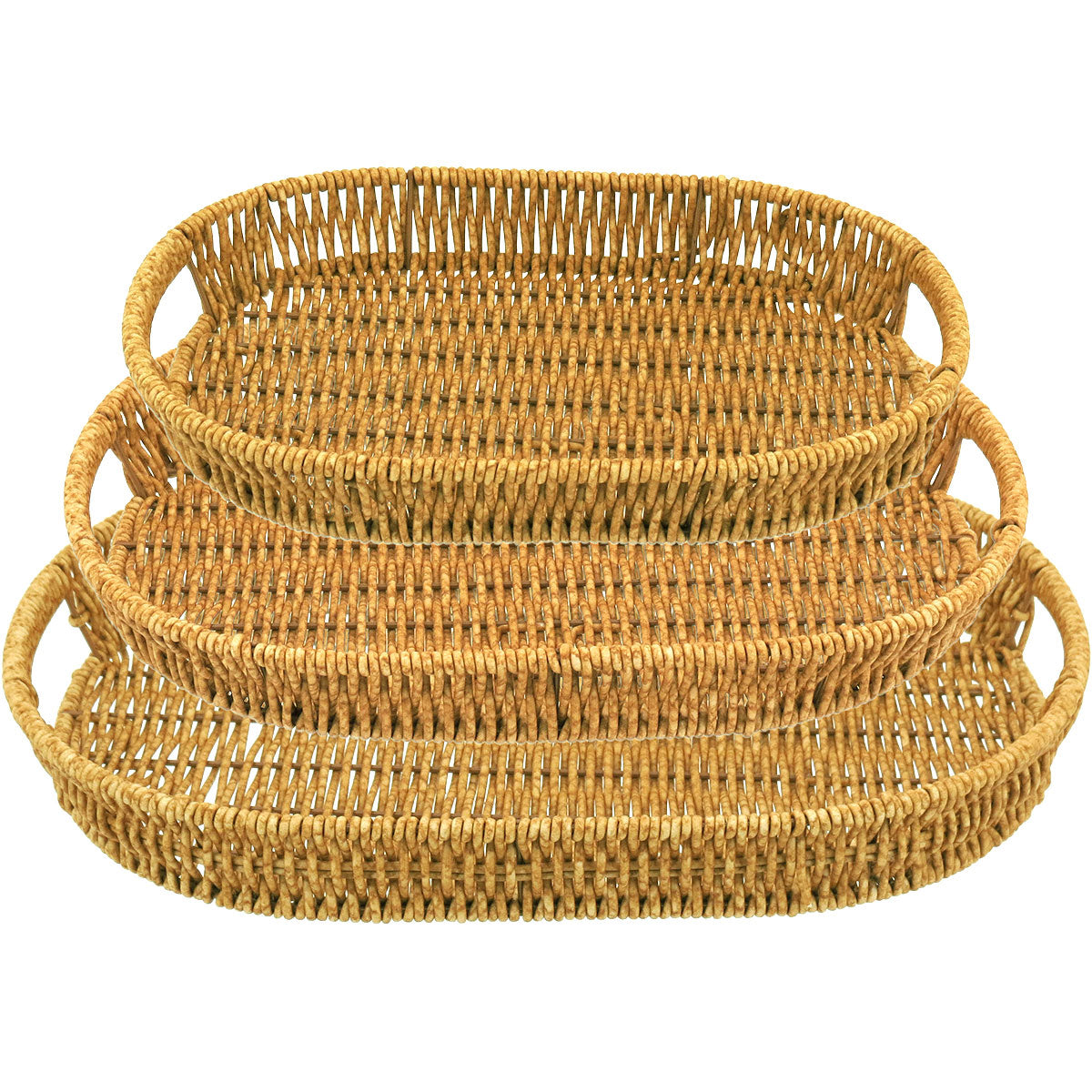 Jogo de Bandejas Plásticas Naturais 3 Peças Marrom - Tamanhos G, M e P