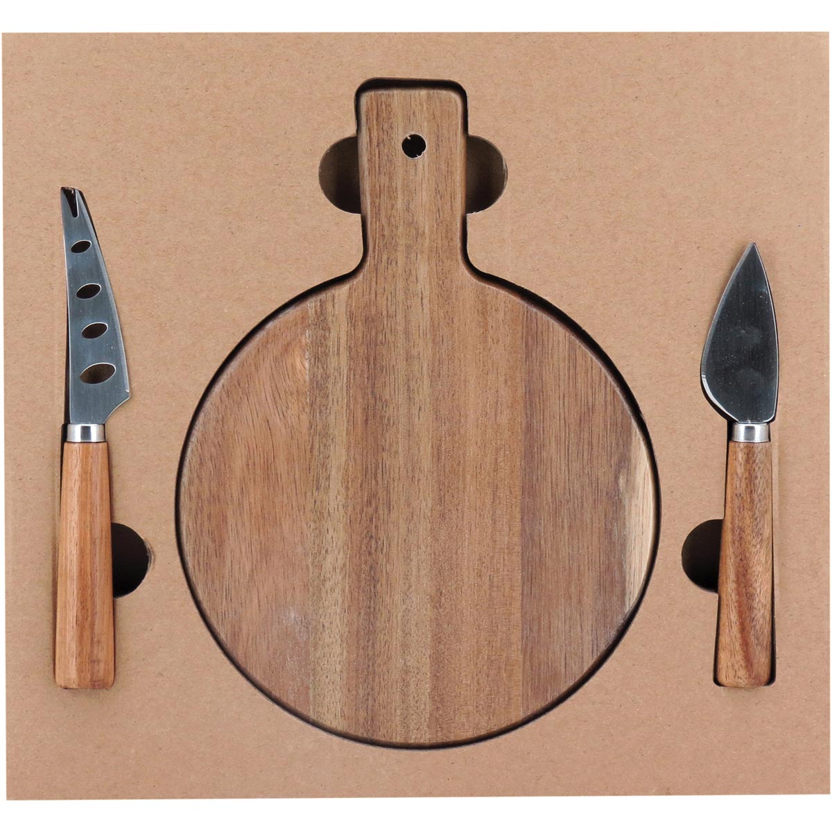 Jogo de Queijo Cheesy Madeira Natural com 3 Facas Especializadas