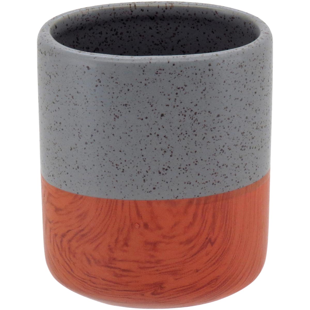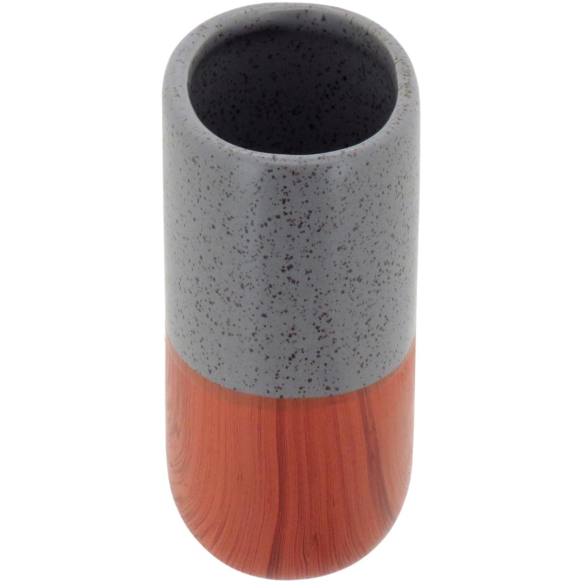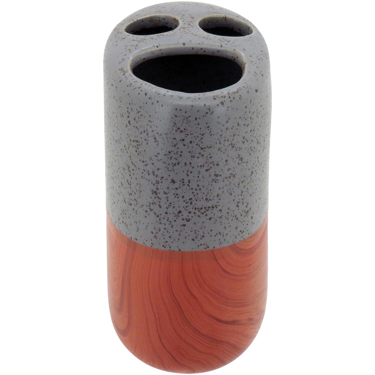 Kit Acessórios Banheiro Cerâmica Cinza - Porta-Sabonete, Porta-Algodão, Escovas