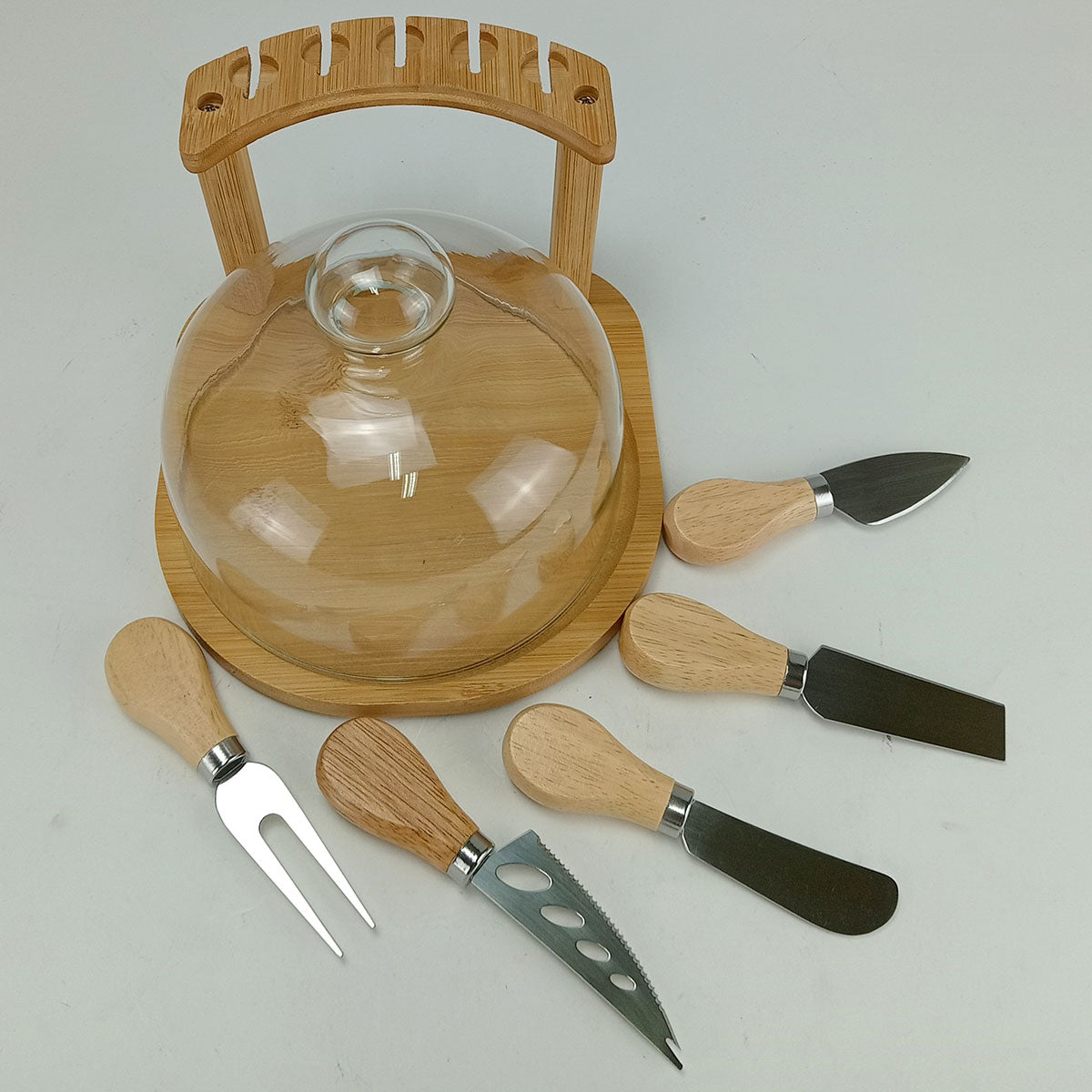 Jogo de Queijo 7 Peças Home&Co com Tampa de Vidro e Tábua de Bambu