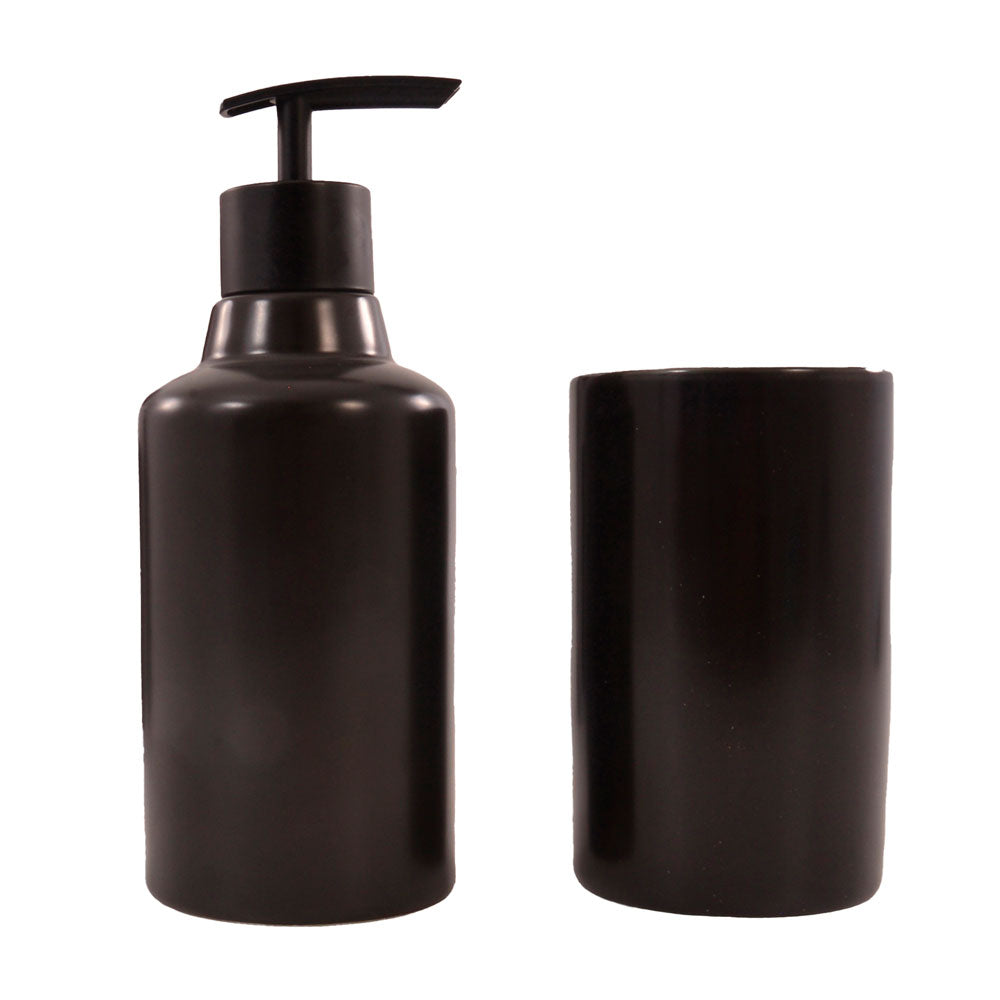 Jogo de Banheiro Cerâmica Preto 2 Peças Mai Home - Porta-Sabonete e Porta-Escovas
