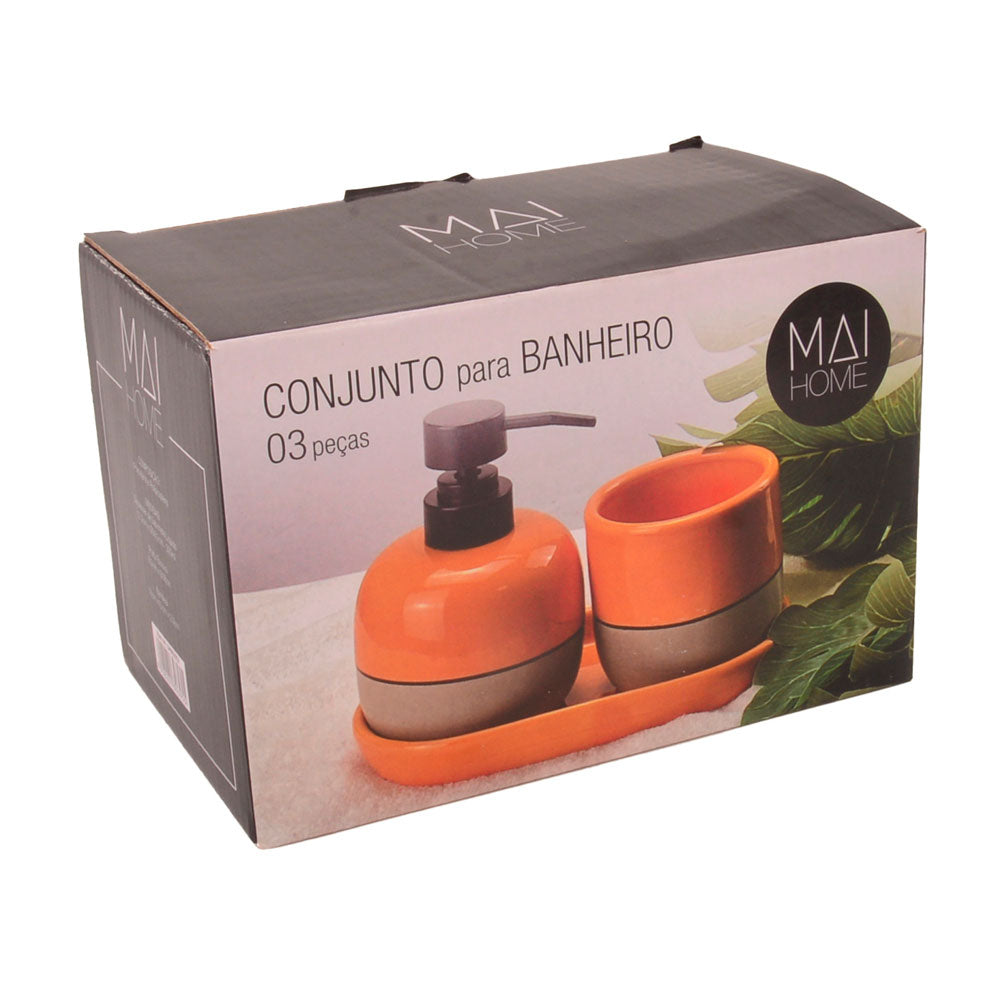Jogo para Banheiro Cerâmica Amarela 3 Peças Mai Home