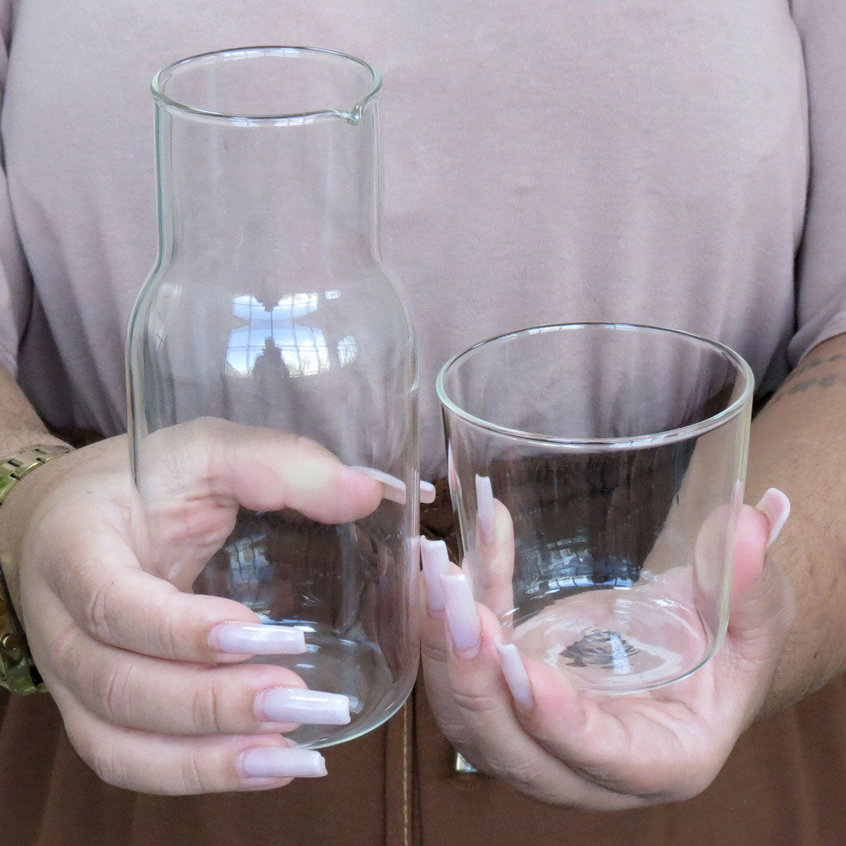 Mantenha-se hidratado com estilo utilizando nossa moringa de vidro borossilicato. Com um design moderno e sofisticado, esta peça encantadora é perfeita para armazenar água fresca e limpa, além de adicionar um toque de charme à sua mesa. A moringa não só incentiva a beber mais água ao longo do dia, mas também combina facilmente com qualquer decoração, tornando-se um item indispensável na sua cozinha ou sala de jantar.