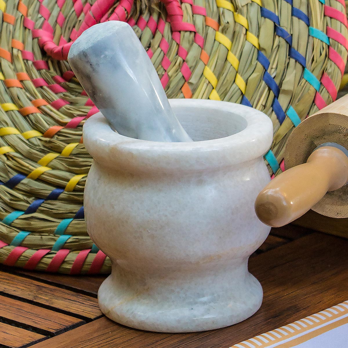 Pilão de Mármore Natural Belchior 10x10cm para Moer e Triturar Ingredientes