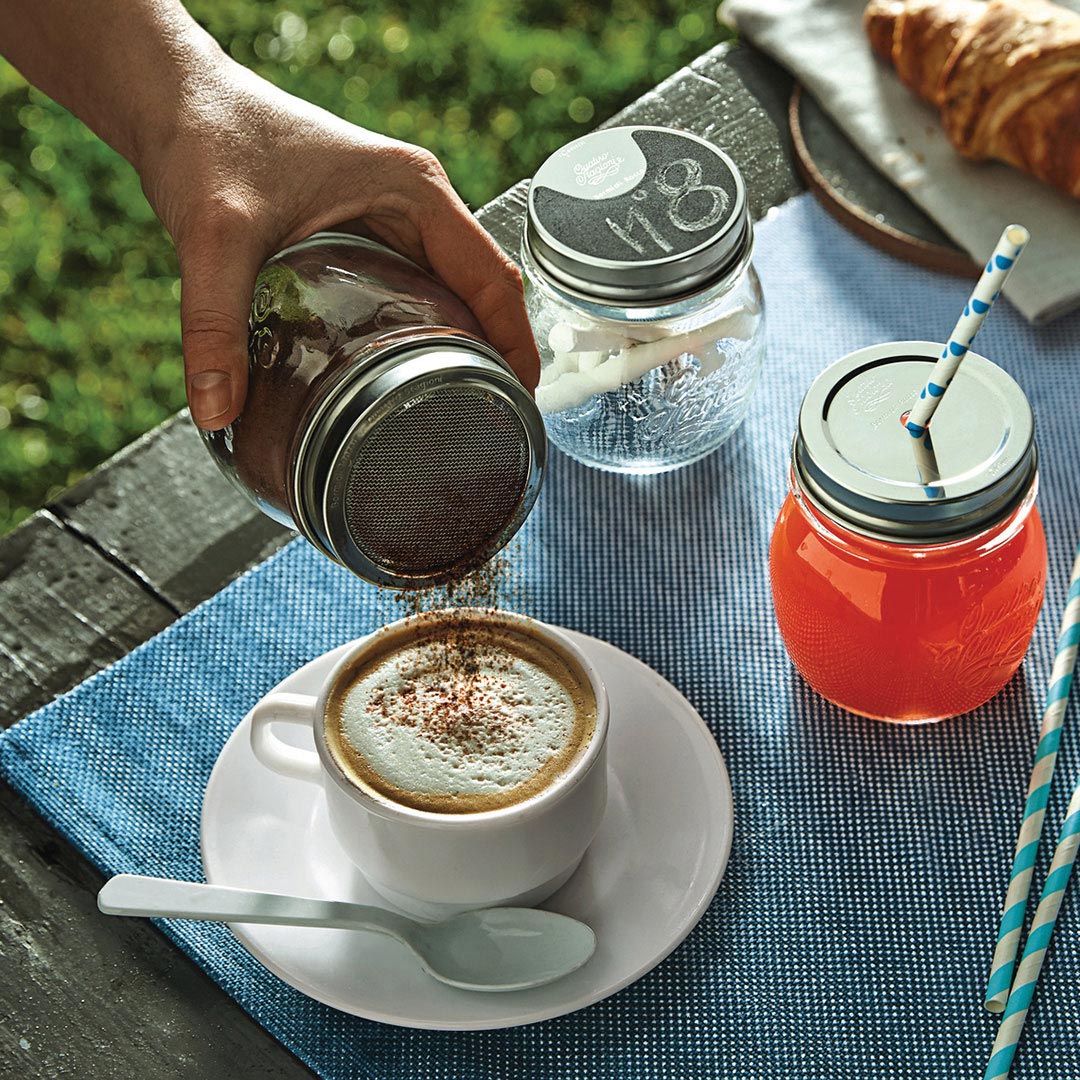 - Ideal para polvilhar açúcar em sobremesas ou temperos em pratos salgados