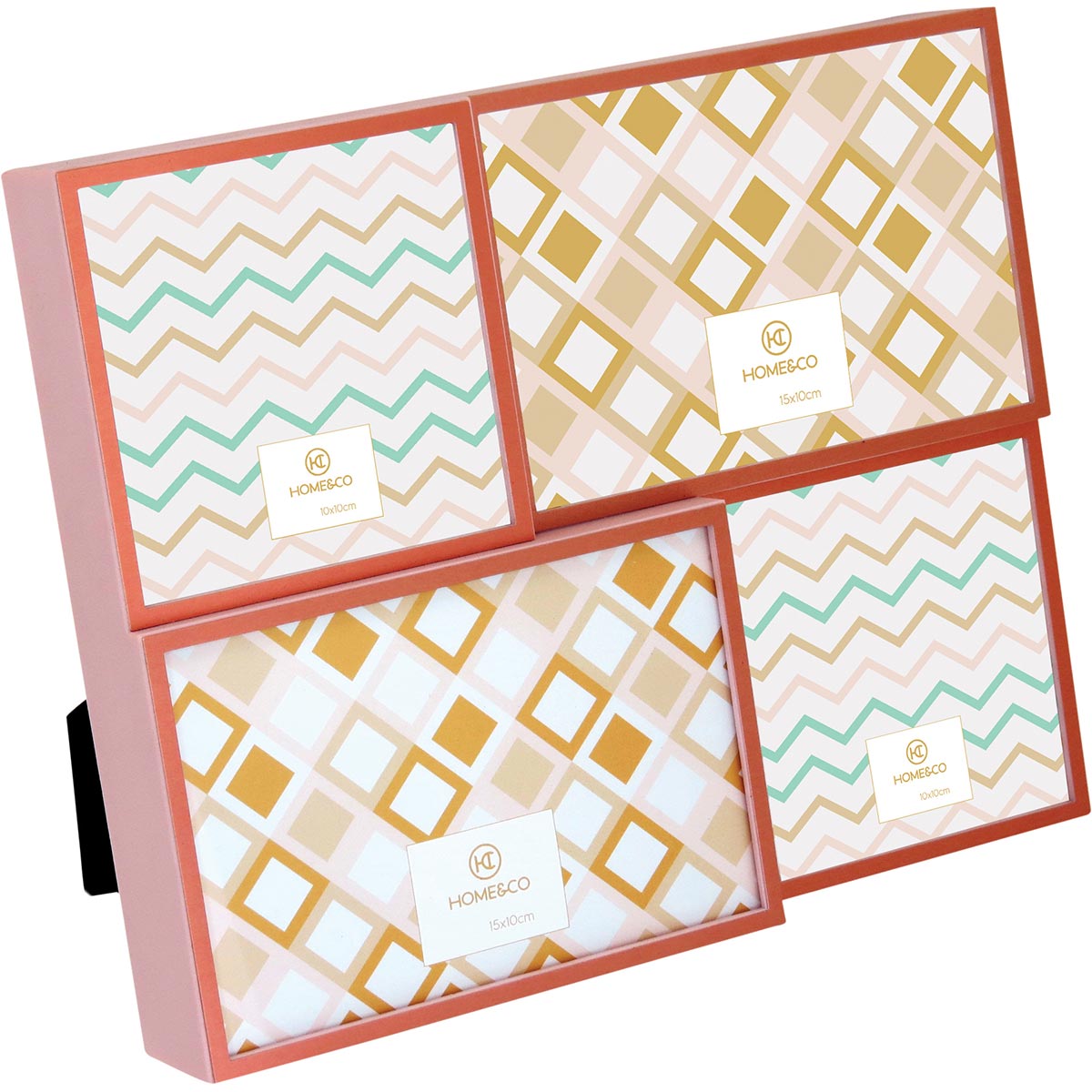 Porta-retratos Alumínio Rosa Home&Co Versalius 4 Fotos 27x21cm