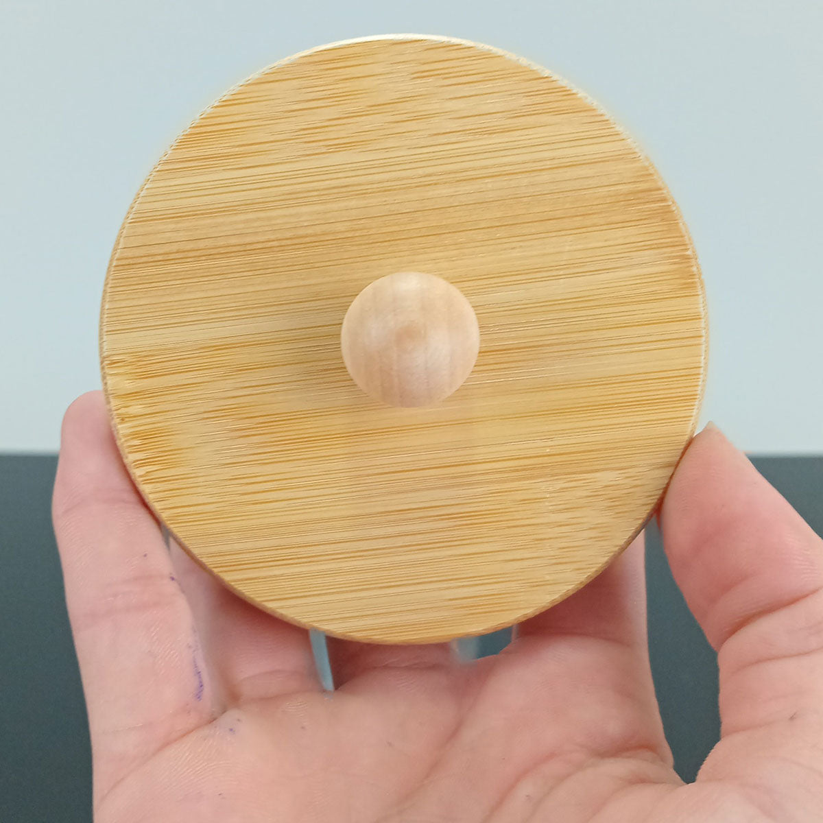 - Tampa de bambu hermética que garante o fechamento seguro e proteção contra umidade e insetos