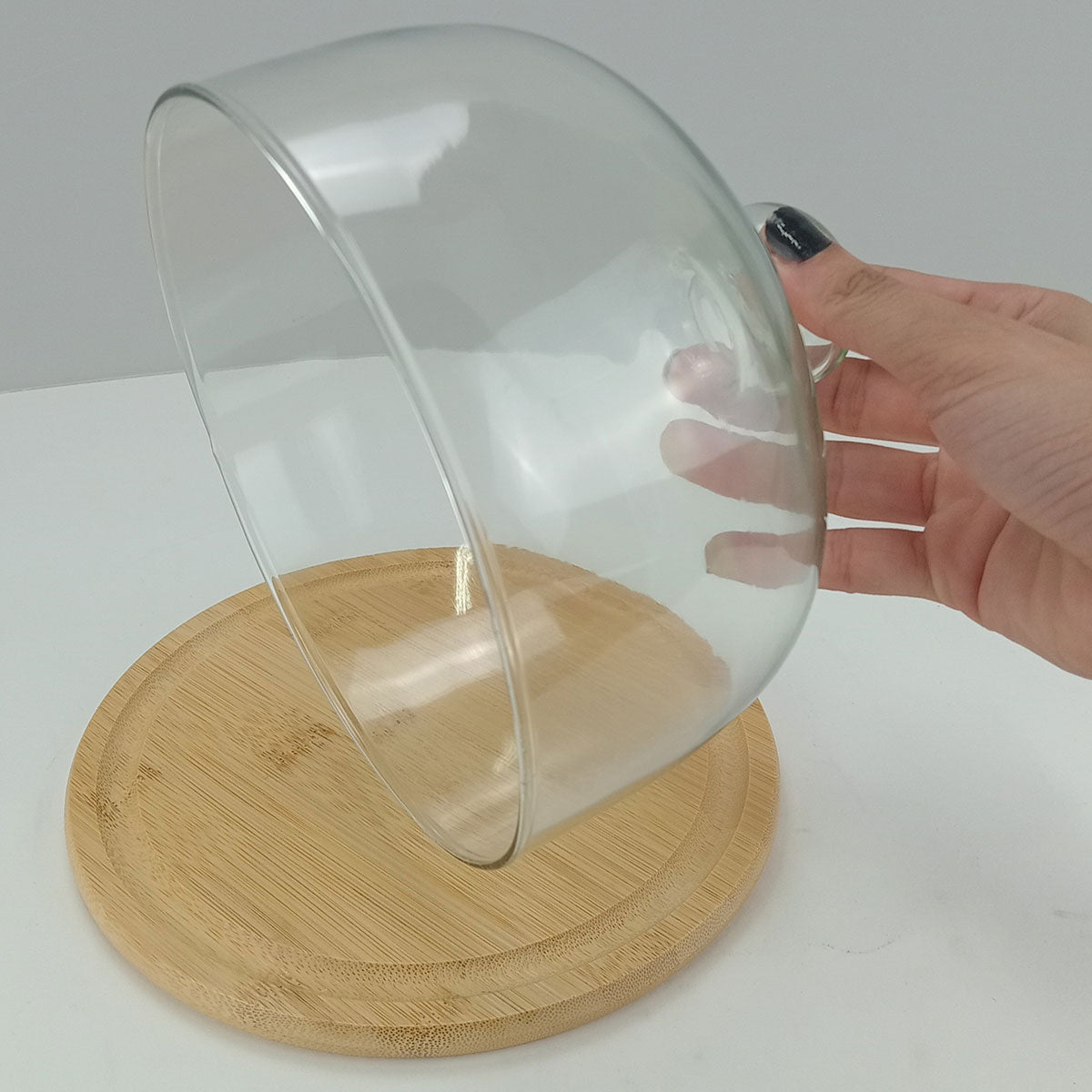Prato de Bolo Redondo Home&Co com Tampa de Vidro e Base de Bambu 15cm
