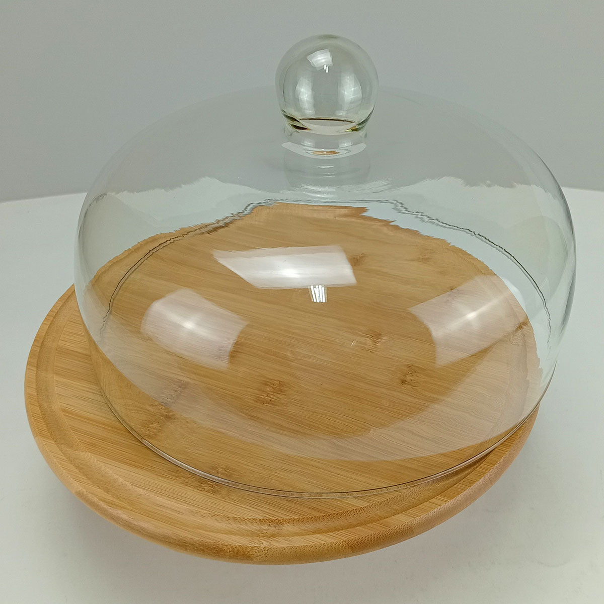 Prato de Bolo Redondo Home&Co com Tampa de Vidro e Base de Bambu 30cm