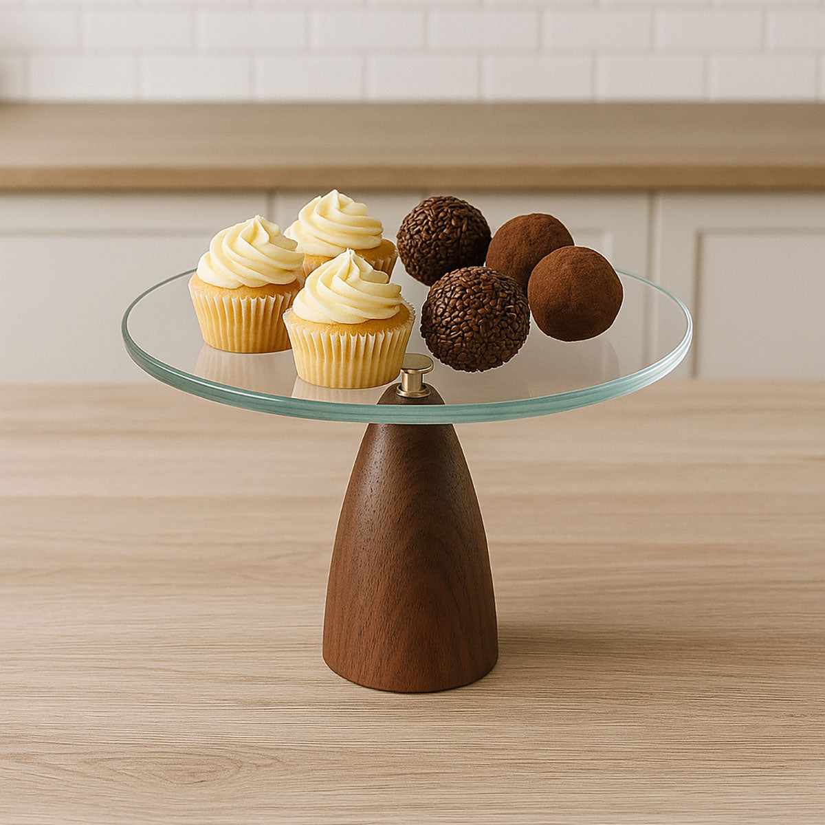 Prato para Doces Home&Co Vidro Transparente Base Metal Marrom 25x25cm